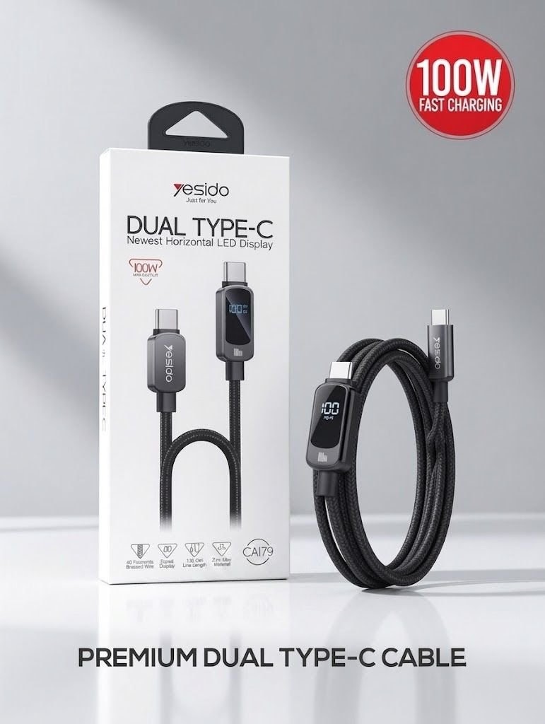 Upgrade your charging experience with the Yesido CA179 Dual Type-C cable. This isn’t just a charging cord—it’s a smart tool that shows you exactly how much power your device is receiving in real-time.